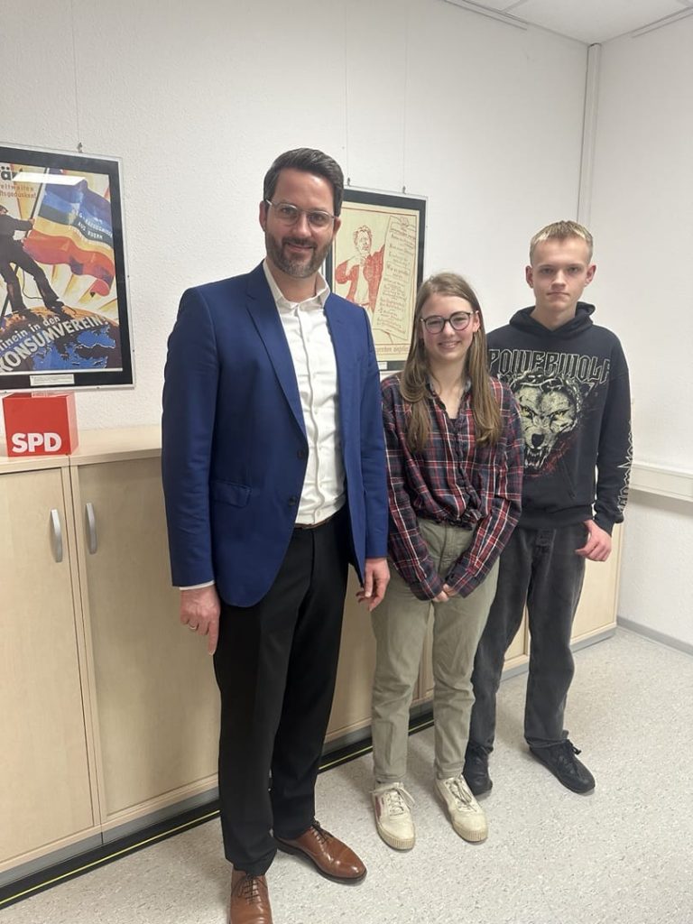 Am heutigen Tag besuchten die Schülerin Laura Hein und der Schüler Tim Gömpel aus der Klasse 10aR den Bundestagsabgeordneten des Schwalm-Eder-Kreises, Dr. Philipp Rottwilm, in